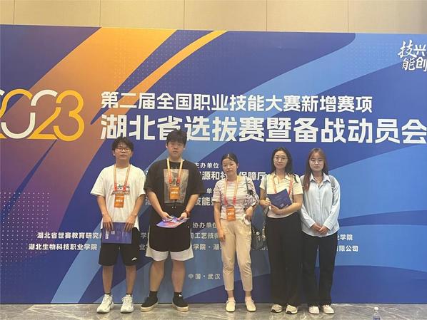 6月27日,我院陈荣博士带领21级环境工程专业学生陈思雨、冯实、陈世麒、21级生物制药学生龙晶晶赴光谷科技会展中心参加由湖北省人力资源和社会保障厅举办、湖北省职业技能鉴定指导中心承办的第二届全国职业技能大赛备战动员会。大力弘扬劳模精神、劳动精神、工匠精神,营造尊重劳动、尊重知识、尊重人才、尊重创造的良好社会氛围,进一步激励广大劳动者特别是青年一代崇尚技能、学习技能、投身技能、提升技能,走技能成才、技能报国之路。