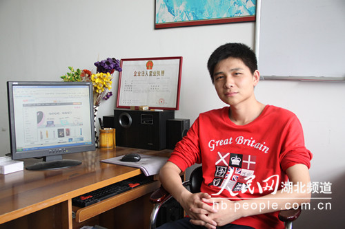 (李倩岚 鲍欢 柯伟)人民网武汉5月20日电 有着殷实的家境,身高1.82米,长相帅气的他是同学眼中的“高富帅”,谁又能想到大学四年来,他靠摆地摊、做推销、做兼职赚取生活费,还积累了创业资金。去年10月份又和朋友合伙创办电子商务公司,到今年4月份月营业额已达3万多元,他就是武汉长江工商学院工学院大四学生肖冬冬。