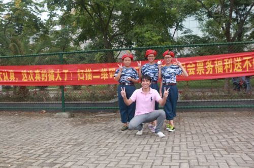 “待我长发及腰,少年你‘扫’我了”,现场搞怪的横幅,吸引了大一新生的组队围观拍照……