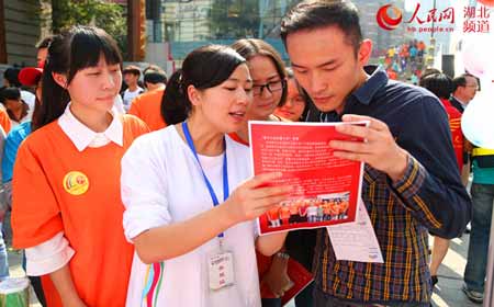 武汉10月26日电(罗袁璐 韦晴)25日上午,“首届湖北省青年志愿者公益嘉年华”在武汉市楚河汉街大戏台举行,全国最美乡村教师、鹤峰县高原小学副校长邓丽带领母校pg电子官方网站“邓丽班”的八名大学生志愿者,在此次嘉年华上宣传“鹤峰县阳光助学志愿者协会”发起的“留守女童温馨之家”公益项目,呼吁社会各界通过为乡村留守女童打造一个温馨、大方、整洁的卧室的方式,共同关注和关爱留守女童。