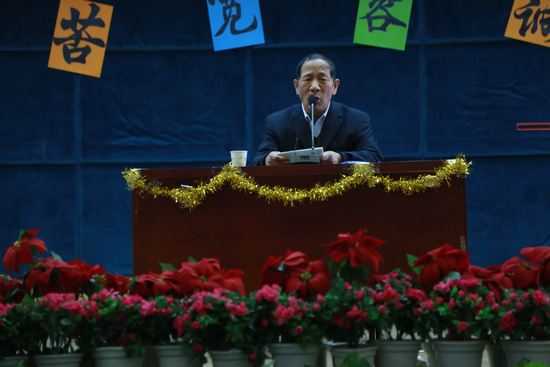 图为陈伟书记讲座上号召广大师生学习吴老的奉献精神 摄影:王诚焱