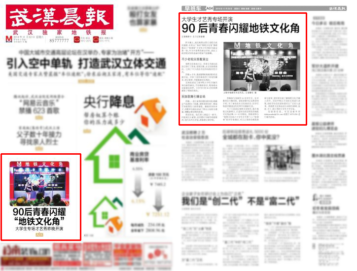 地铁文化角成立后,各类文艺演出活动已举行了多场,每周五晚,去文化角看演出,已成了不少武汉市民休闲娱乐的方式。