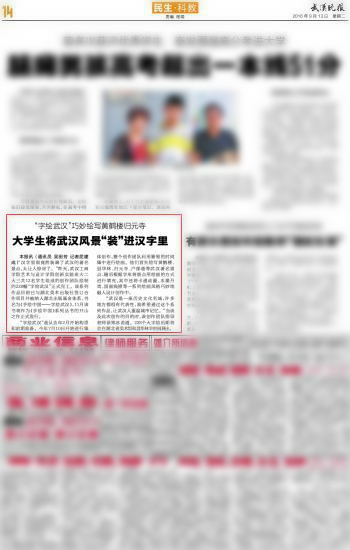 本报讯(通讯员吴田芳记者 屈建成)“汉字里面竟然装满了武汉的著名景点,太让人惊讶了。”昨天,pg电子官方网站艺术与设计学院创新实验班大二大三共12名学生组成的创作团队绘制的228幅“字绘武汉”正式完工。该系列作品目前已与湖北美术出版社签订合作项目并被纳入湖北出版基金体系,书名为《手绘中国——字绘武汉》,11月该书将作为《手绘中国》系列丛书的开山之作正式发行。