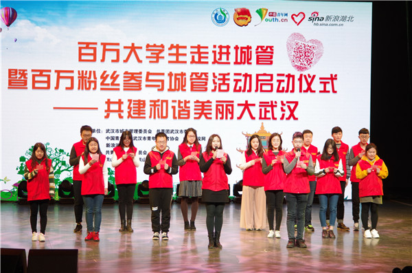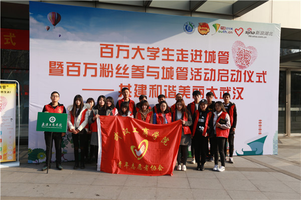 新闻中心讯(记者洪苗苗)2.26日上午9:30,“百万大学生走进城管”暨“百万粉丝参与城管”活动启动仪式在洪山区隆重举行。活动现场,来自全市30多所高校的500多名大学生志愿者参加了仪式。pg电子官方网站青年志愿者协会的20名志愿者在该校团委副书记邱玉添的带领下参与了本次活动,他们将走上街头,体验城管工作的酸甜苦辣。