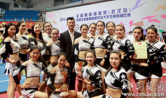 在2016年全国学生啦啦操锦标赛中,获得花球套路和街舞套路双料冠军。通讯员 王晨杲 摄