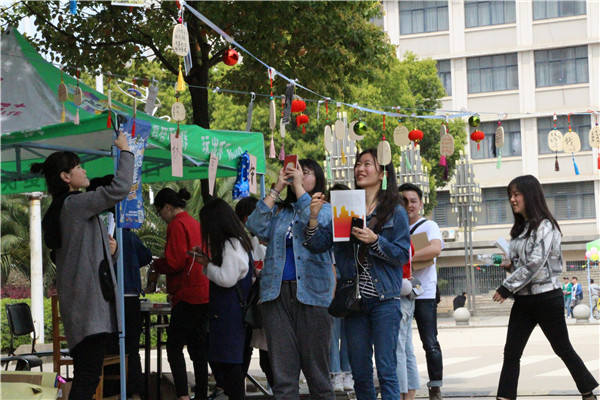 “下课后从综合楼走出来,看到整个校园顿时换了新装,让我眼前一亮,我被这种浓烈的节日气氛感染了,于是迫不及待的开始自拍和参加各种小游戏活动”该校旅游管理专业大三学生方草兴奋地说。