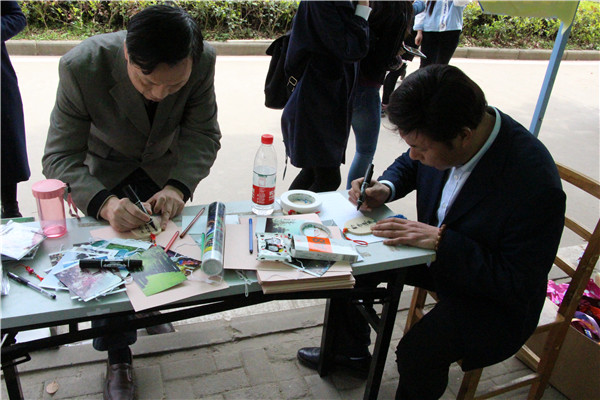 图为校领导正在参与许愿林活动
