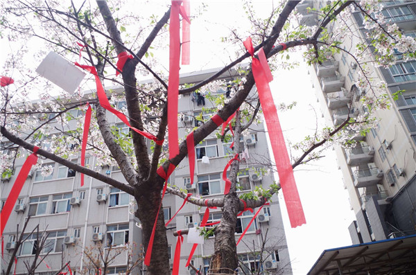 图为同学们正在参与许愿林的活动