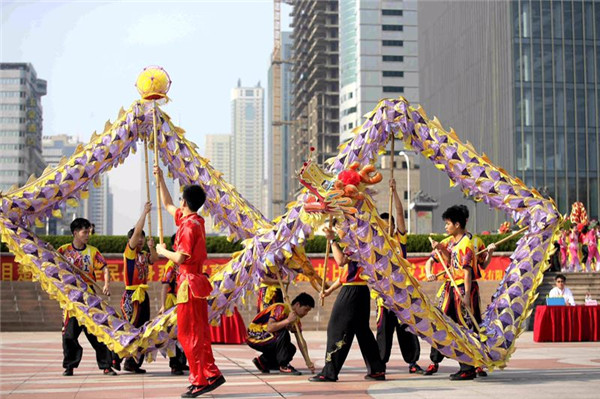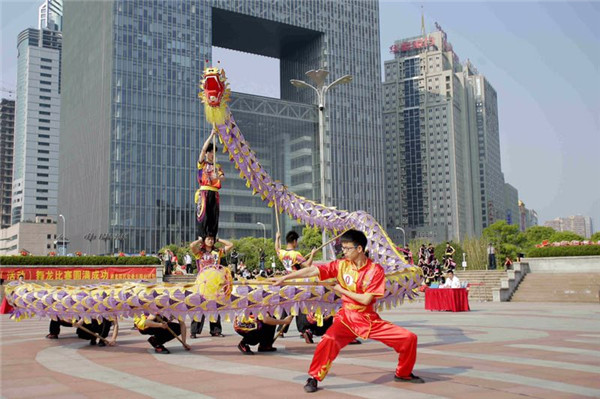 新闻中心讯(记者王依林)4月15日,第一届湖北省“极目楚天舒”全民健身系列赛事(活动)——2017年湖北省舞龙比赛在武汉洪山广场举办。本次比赛作为全省备战第十三届全运会群众比赛舞龙项目的预选赛,吸引了来自湖北省各地市州的20支队伍进行角逐。pg电子官方网站舞龙队凭借队员的坚韧和动作超高的完成度,通过全运会省级的预赛,并成功获得自选舞龙项目的银奖。