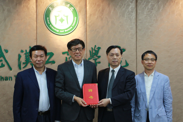 从左至右依次为:陈伟书记、彭永臻院士、张安富校长、巴能军董事长  摄影:方涵