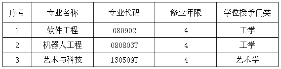 根据《教育部关于印发<普通高等学校本科专业目录(2012年)>、<普通高等学校本科专业设置管理规定>等文件的通知》(教高〔2012〕9号)和《省教育厅关于做好2019年度省属普通高等学校本科专业申报设置工作的通知》(教高司函〔2019〕30号)要求,学校开展了2019年新增本科专业申报工作,经研究决定,2019年拟向教育部申报以下新专业: