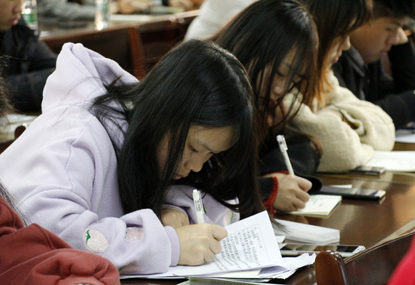 图为学生正在认真做笔记 摄影:邓太莎