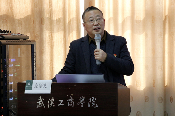 左宗文同志向同学们介绍了本次党课的主题,他指出,党的十九大以来,新时代中国特色社会主义文化又有了新思想、新观点、新论断,形成了系统化的文化思想。新时代中国特色社会主义文化,源自于中华民族五千多年文明历史所孕育的中华优秀传统文化,熔铸于党领导人民在革命、建设、改革中创造的革命文化和社会主义先进文化,植根于新时代中国特色社会主义伟大实践,需要研学并坚持文化自信,并积极投身武工商文化的建设实践。
