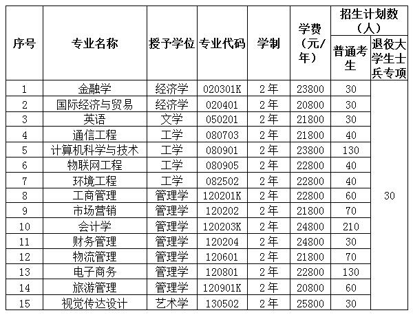 普通专升本学生入学后的收费项目和标准与我校2020年同一专业全日制普通本科生一致。我校实行学分制教学管理,学费按总额转换为专业学费和学分学费两部分收取。