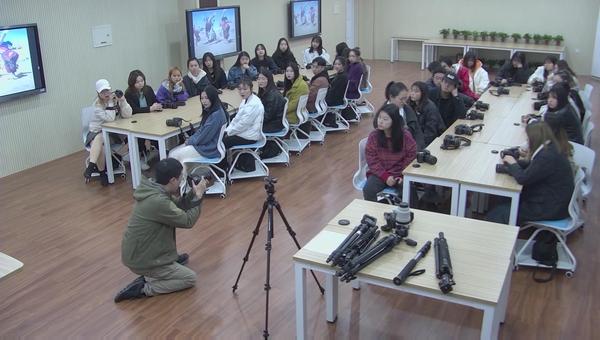 牛学老师为学生示范摄影技术