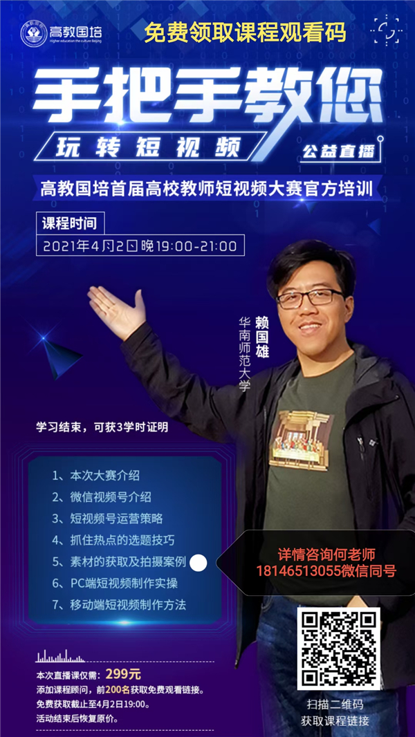 高教国培视频制作培训(线上):4月2日19:00—21:00
