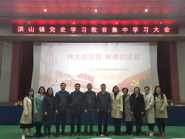 4月9日,李纪明教授在随州市随县洪山镇洪山礼堂,以“伟大的历程,辉煌的成就”为主题讲述了党的百年光辉历史。洪山镇党员干部、全体行政干部,各(村)居委会、镇直单位(部门)“两委”班子成员参加了本次党史学习教育。