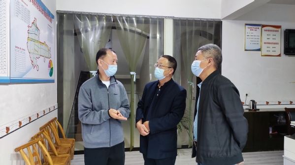 图为学校驻村工作队队长隗德胜(左)介绍相关工作 摄影:陈彦芳