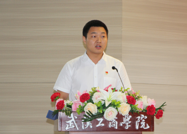 图为管理学院余寿勇作为学生“优秀共产党员”代表发言 摄影:李洋洋