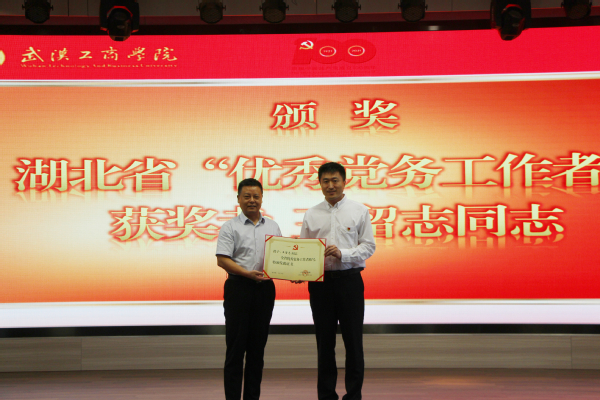 今年,学校喜获两项省级党内表彰殊荣:王留志同志获评湖北省“优秀党务工作者”、胡成松同志获评教育厅“高校优秀共产党员”。刘生元书记分别颁发了荣誉证书。