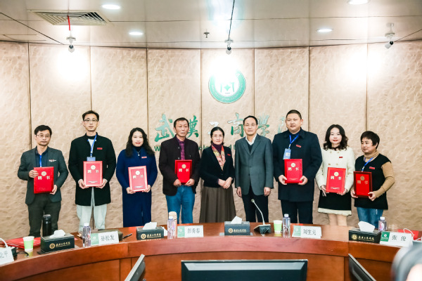 图为彭秀春、孙松发为校友会理事会负责人颁发聘书 见习摄影:李皓