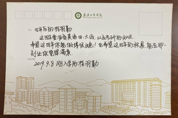 图为桂羽勤在2019年入校时所写的时光明信片