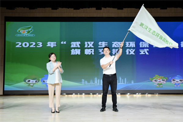 图为2023“武汉生态环保高校行”旗帜交接仪式 摄影:李宇曦