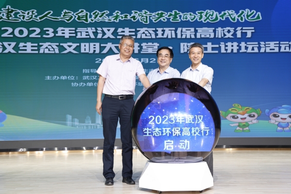 在完成交接仪式后,王焰新院士、任宪友副局长、孔建益校长共同启动“2023年武汉生态环保高校行”活动。
