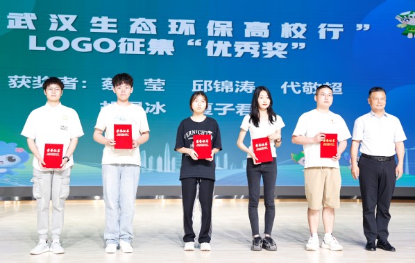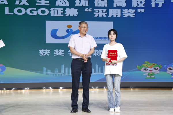 图为武汉市生态环境局党组成员、副局长任宪友为“武汉生态环保高校行”LOGO 设计“采用奖”