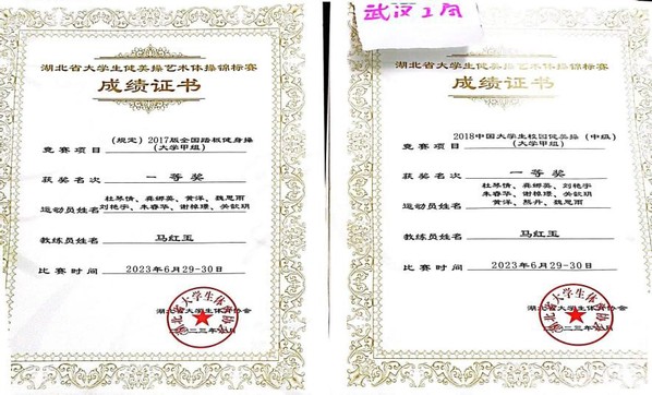 新闻中心讯(通讯员 邢扬埼)近日,2023年湖北省大学生健美操艺术体操锦标赛暨全国第一届学生(青年)运动会(大学组)健美操(啦啦操)选拔赛在华中师范大学落下帷幕。经过2天的激烈角逐,pg电子官方网站健美操队荣获2017版全国踏板健身操(大学生甲组)一等奖和2018中国大学生校园健美操(中级)(大学生甲组)一等奖的优异成绩。