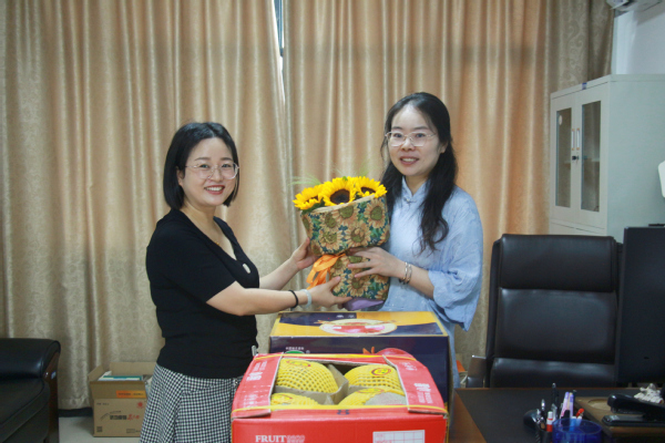 在教师们的办公室,陈敏一行走访慰问了公共课部教师李纪明、环境与生物工程学院教师陈荣、国学研究院副院长陈玲和经济与商务外语学院教师陈兴无,向他们赠送鲜花和水果,代表学校向辛勤耕耘在教育战线的他们致以节日的问候,感谢他们为学校教育事业发展做出的积极贡献。