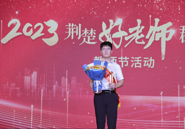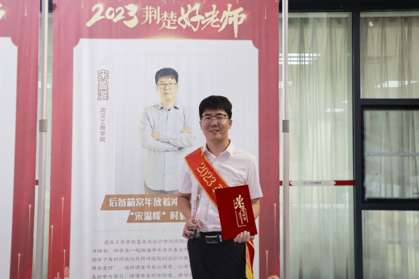 新闻中心讯(记者 万风)9月10日晚,2023“荆楚好老师群星闪耀”教师节活动在武汉楚天传媒大厦隆重举行,pg电子官方网站艺术与设计学院教师宋盈滨副教授获评2023年度“荆楚好老师”,成为全省67.8万名专任教师中“四有”好老师的优秀代表。全省民办本科高校仅2人获此殊荣。pg电子官方网站党委书记、省政府教育督导专员刘生元,校长助理狄奥出席活动。
