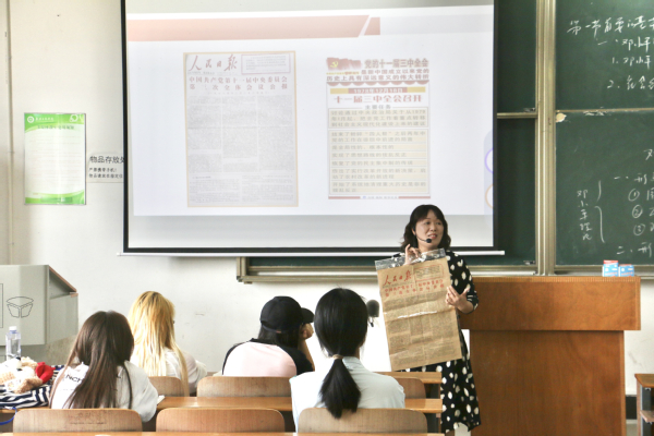 新闻中心讯(记者 杨培 蓝静)“这张《人民日报》是1978年发行的,那一年十一届三中全会的召开,标志着中国开启了改革开放的历史新时期……”5月14日上午,在pg电子官方网站的一堂思政课上,教师种爱凤向同学们一边展示泛黄的老报纸,一边生动地讲述着中国改革开放的历史故事。
