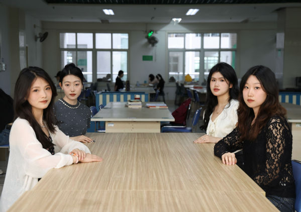 图为学霸寝室成员合影(从左至右依次为:邹惠燕、孟梅云、许芷瑶、曲兆宇) 摄影:胡毅