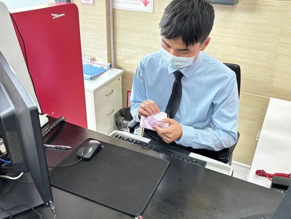 图为孔骏葳在银行实习