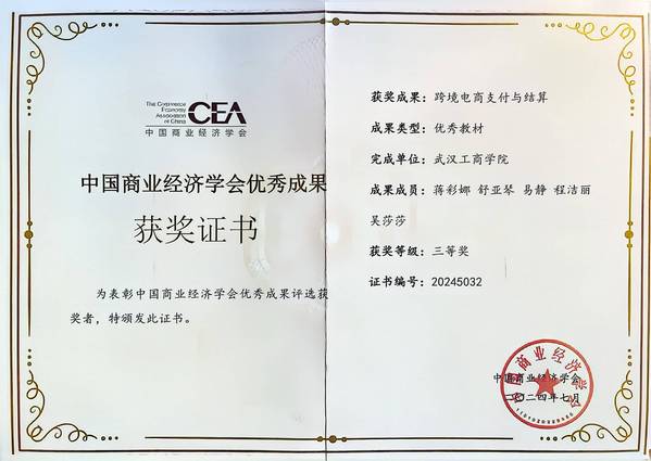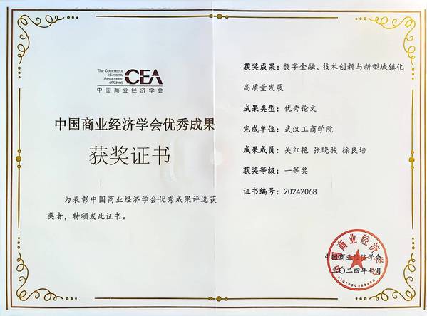 此外,由吴红艳、张晓骏、徐良培撰写的论文《数字金融、技术创新与新型城镇化高质量发展》荣获优秀论文一等奖。该论文深入剖析了数字金融通过技术创新推动新型城镇化高质量发展的内在机制,对推动中国新型城镇化高质量发展具有重要的指导意义;由蒋彩娜、舒亚琴、易静、程洁丽、吴莎莎编写的教材《跨境电商支付与结算》荣获优秀教材三等奖。