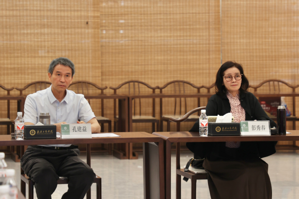 图为彭秀春董事长和孔建益校长出席迎评促建工作推进会 摄影:芮雨欣