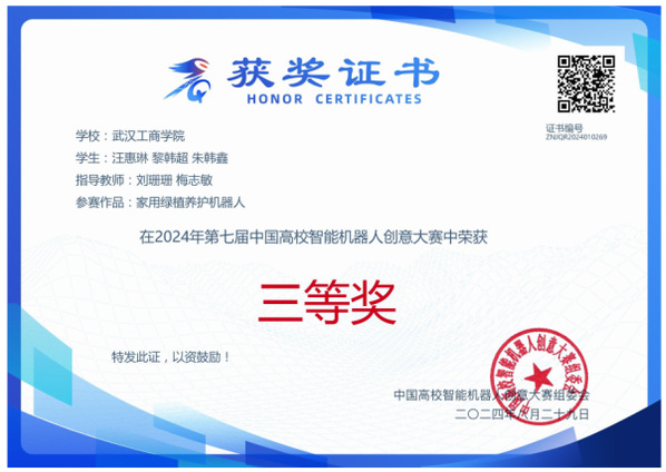图为学校参赛队伍荣获全国赛决赛三等奖