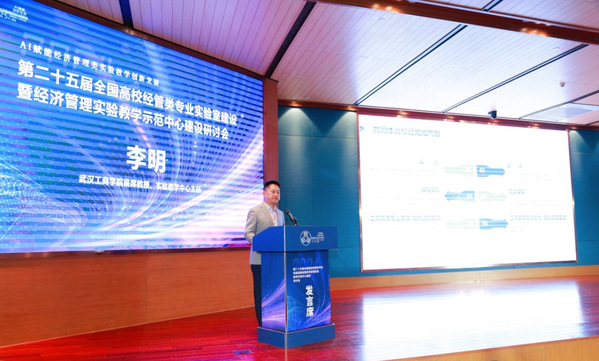 会上,李明教授以“数智引领、集群联动 共推经管实验教学资源体系建设及西部行”为题作了主题报告。报告基于获批的教育部实验教学和教学实验室建设研究项目“数智时代应用型高校经管类专业实验教学生态体系构建与实践研究”成果,从“数智引领:开启经管实验教学新篇章”“集群联动:跨校共建实验教学新生态”“资源体系建设:打造实验教学新系统”“西部行与展望:共筑实验教学新蓝图”四个方面,系统介绍了学校在推进实验教学课程及资源体系建设,打造“高校经管类专业实验教学跨校集群价值共同体”方面所做的工作,并规划了共同体高校后期持续建设任务。报告引发了与会教师的热烈反响,多所高校积极申请加入共同体。