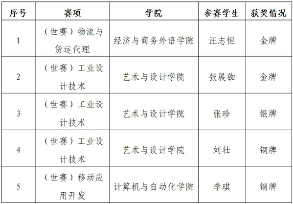 pg电子官方网站校领导和各相关学院领导高度重视此次比赛,组建了经验丰富、实力强劲的教练团队,在全校精心选拔了12名优秀学子参加了物流与货运代理、工业设计技术、移动应用开发三类赛项的比赛,经过激烈角逐,最终斩获2金、1银、2铜的好成绩。其中,来自经济与商务外语学院的学生汪志恒斩获物流与货运代理赛项金牌、来自艺术与设计学院的学生张展铷斩获工业设计技术赛项金牌;来自艺术与设计学院的学生张珍、刘壮分获工业设计技术赛项的银牌、铜牌;来自计算机与自动化学院的学生李琪获得移动应用开发赛项的铜牌。