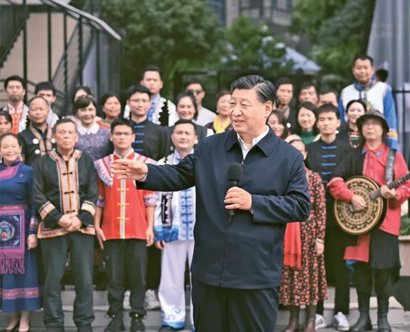 2023年12月14日至15日,中共中央总书记、国家主席、中央军委主席习近平在广西考察。这是14日上午,习近平在南宁市良庆区蟠龙社区考察时,同社区各族群众亲切交流。新华社记者 燕雁/摄
