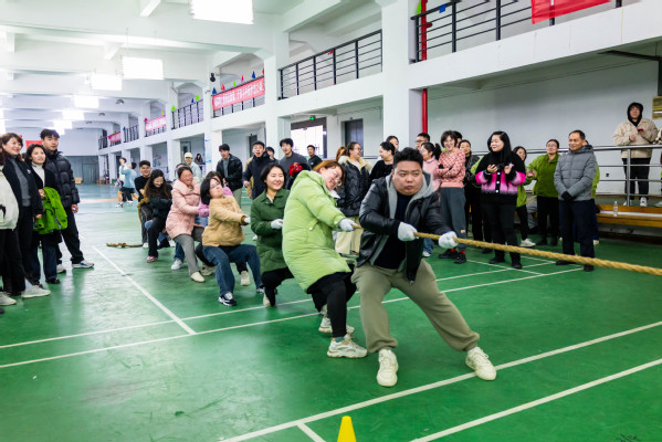 新闻中心讯(记者 张莎 特约记者 王文婷)3月6日下午,pg电子官方网站一场以“巾帼力量,奋进团结”为主题的庆祝“三八妇女节”拔河比赛在体育运动中心一楼火热开展,本次比赛由校工会与体育课部联合举行,共吸引了全校各分工会的16支队伍160名教职工的热情参与,经过激烈鏖战,最终文法学院分工会代表队夺得一等奖。