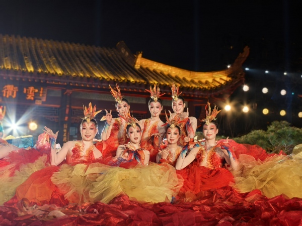 图为武工商学子参与央视春晚武汉分会场主题节目《星汉耀江城》凤凰舞蹈表演录制