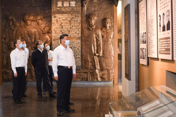 2022年10月27日,习近平总书记在延安革命纪念馆,参观《伟大历程——中共中央在延安十三年历史陈列》。新华社记者 燕雁 摄