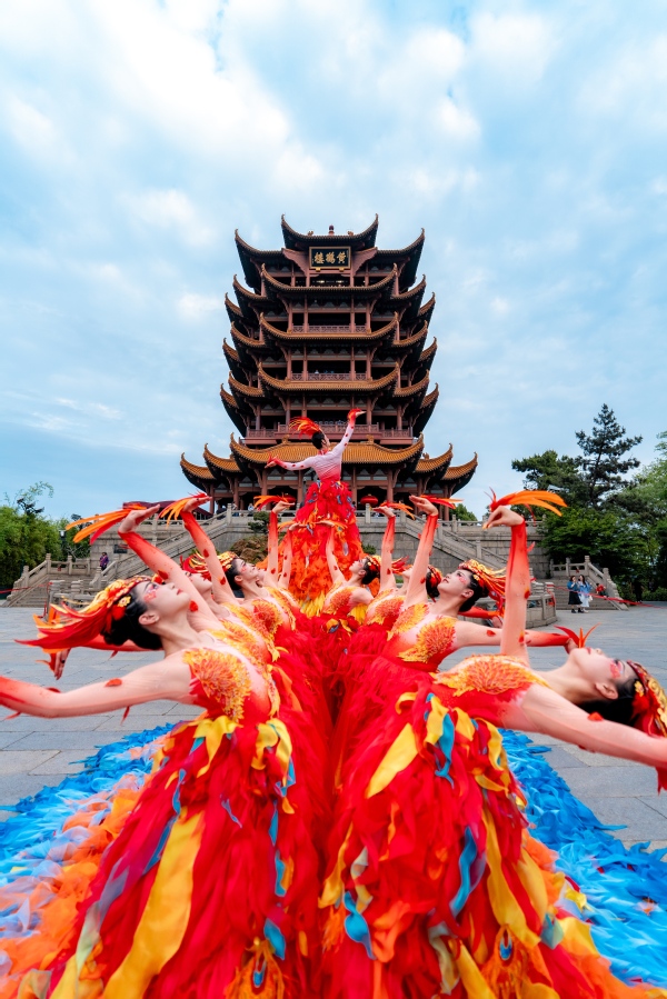 在今年的央视蛇年春晚中,武汉分会场节目压轴震撼登场,迅速霸屏热搜,其中在千年名楼黄鹤楼前表演的凤凰舞,以大气绝美之姿,尽显武汉英雄之城的涅槃重生和蓬勃之力,给全球观众留下了深刻印象,强势出圈、吸粉无数。据黄鹤楼演艺中心艺术总监严黎介绍,为了再现春晚经典,此次黄鹤楼公园演艺中心经过数月的精心编排,让凤凰舞以《凤舞九天》之名在黄鹤楼前重新演绎,“五一”小长假期间不间断演出,每天4场,让广大游客能够在黄鹤楼前直观近距离欣赏武汉风貌,感受武汉精神。