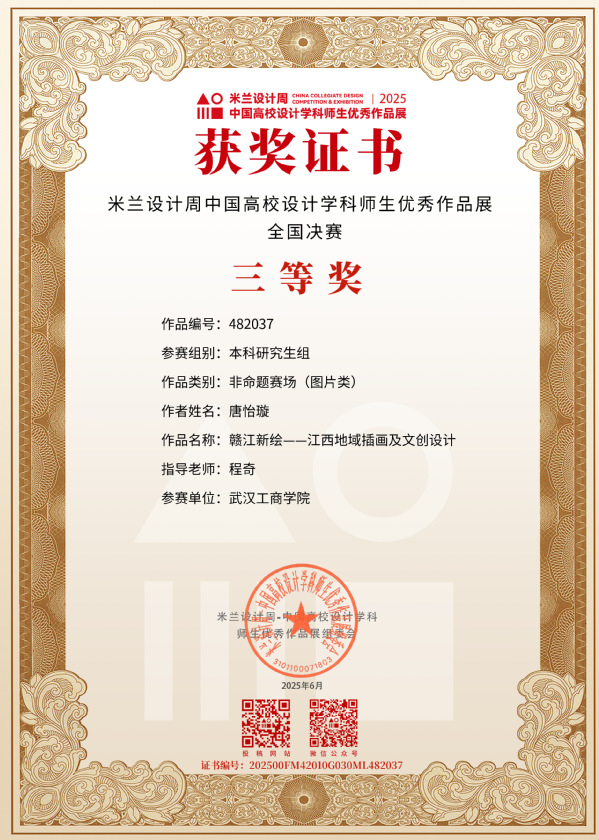 在本次大赛中,学生孙薛宝、肖纪彤、曹陈睿的作品《幻想之旅》(指导老师:程奇)在非命题赛道中斩获全国一等奖;学生皮崇岑、冉子文、陶周庆的作品《青春的海洋》(指导老师:何轩、宗国凯),学生陈泽华的作品《〈逐梦巴黎燃情奥运〉长卷插画及文创产品设计》(指导老师:程奇)荣获全国二等奖;另有7件作品荣获全国三等奖。