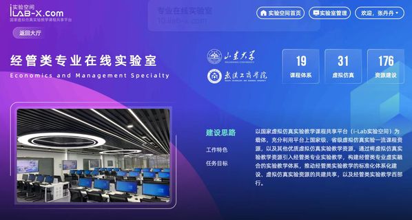 图为i-Lab实验空间经管类专业在线实验室网站