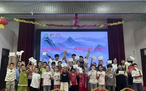 实践队队员们还特别注重孩子们的情感表达与心理关怀,8月6日,队员何美靖带来了一堂充满温情的“让爱落在纸上——感恩信写作”课,让知识与温情在笔尖流淌。她耐心讲解了书信格式与表达技巧,引导孩子们敞开心扉。大家热情高涨,纷纷提笔:有的写给在外打工的父母倾诉思念,有的写给家乡的爷爷奶奶分享快乐,有的写给小伙伴表达友情。一句句“我想告诉爸爸我交到了新朋友!”“谢谢哥哥姐姐教我画画唱歌!”道出了他们的心声。何美靖表示:“教孩子们写信,不仅是传授技能,更是种下一颗沟通与表达的种子,在信息时代,我们希望他们体会手写文字的温暖力量,学会真挚地连接远方亲人的心。”