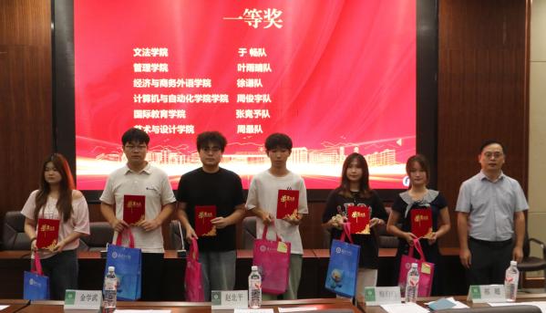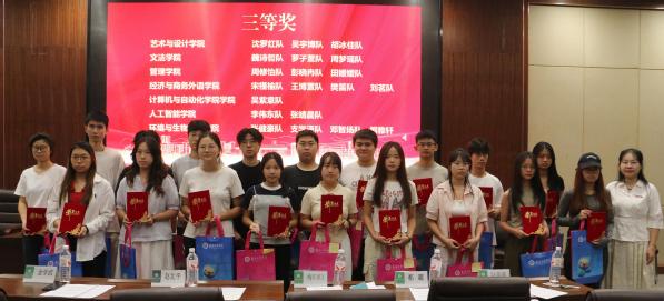金学武、梅归归、陈玲分别为一、二、三等奖团队队长颁奖。赵北平为优秀指导老师颁奖。