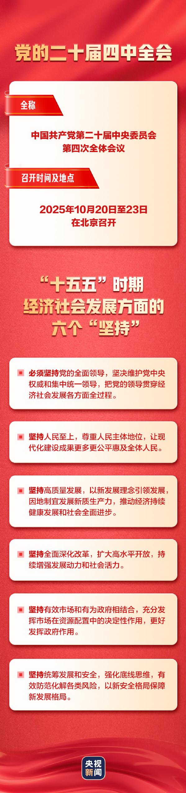 中国共产党第二十届中央委员会第四次全体会议于10月20日至23日在北京召开。更多内容,一张图带你了解↓↓↓